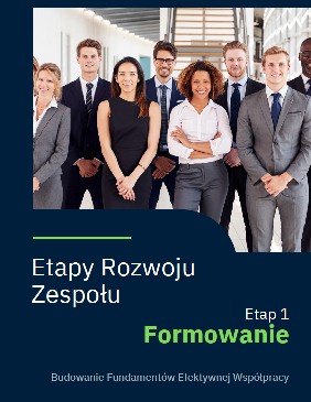 Autorskie e-booki pn. Etapy Rozwoju Zespołu z praktycznymi narzędziami i ćwiczeniami, które pomogą Ci efektywnie zarządzać zespołem na każdym etapie jego rozwoju — od formowania, przez docieranie, normowanie i wykonanie, aż po zakończenie współpracy.